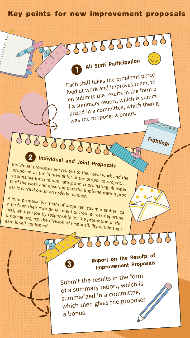Combining the different strengths of the two, the company’s own characteristics and the experience gained from the one year trial in 2020, DDTOP continues to improve the relationship between “people”, “things” and “people and things” to achieve growth in personal quality and work performance together and to promote innovation in corporate management. By allowing professional and unprofessional people, capable and less capable people, and by allowing the company to submit “Improvement Proposals” and fill out “Improvement Proposal Results Reports” from top to bottom, everyone can participate in the improvement, and everyone can gain a sense of achievement, so that the improvement proposals can provide a positive environment for the development of the company in a practical manner.